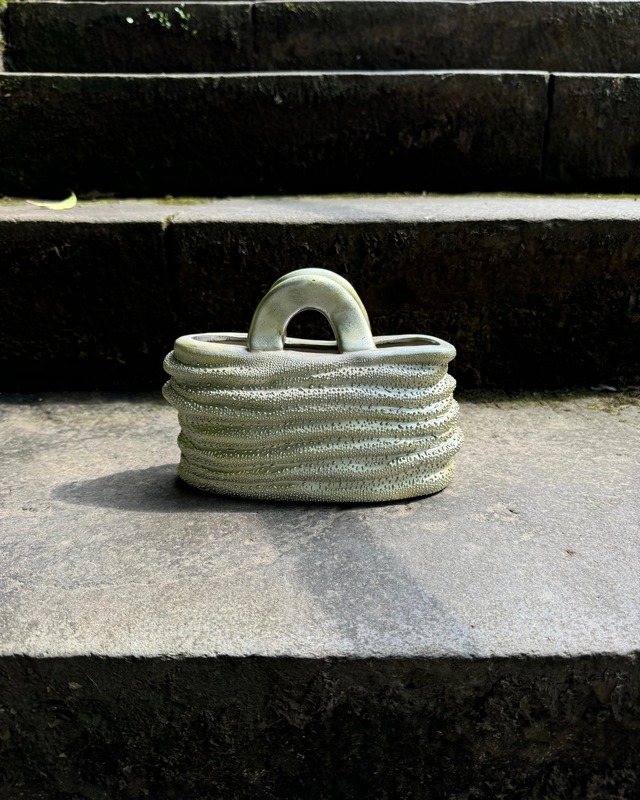 横幅:約20cm 高さ:約15cm 奥行き:約7cm 陶器製。 つぶつぶ、うねうね、質感が面白いオブジェです。 お花を挿すのもおすすめ。