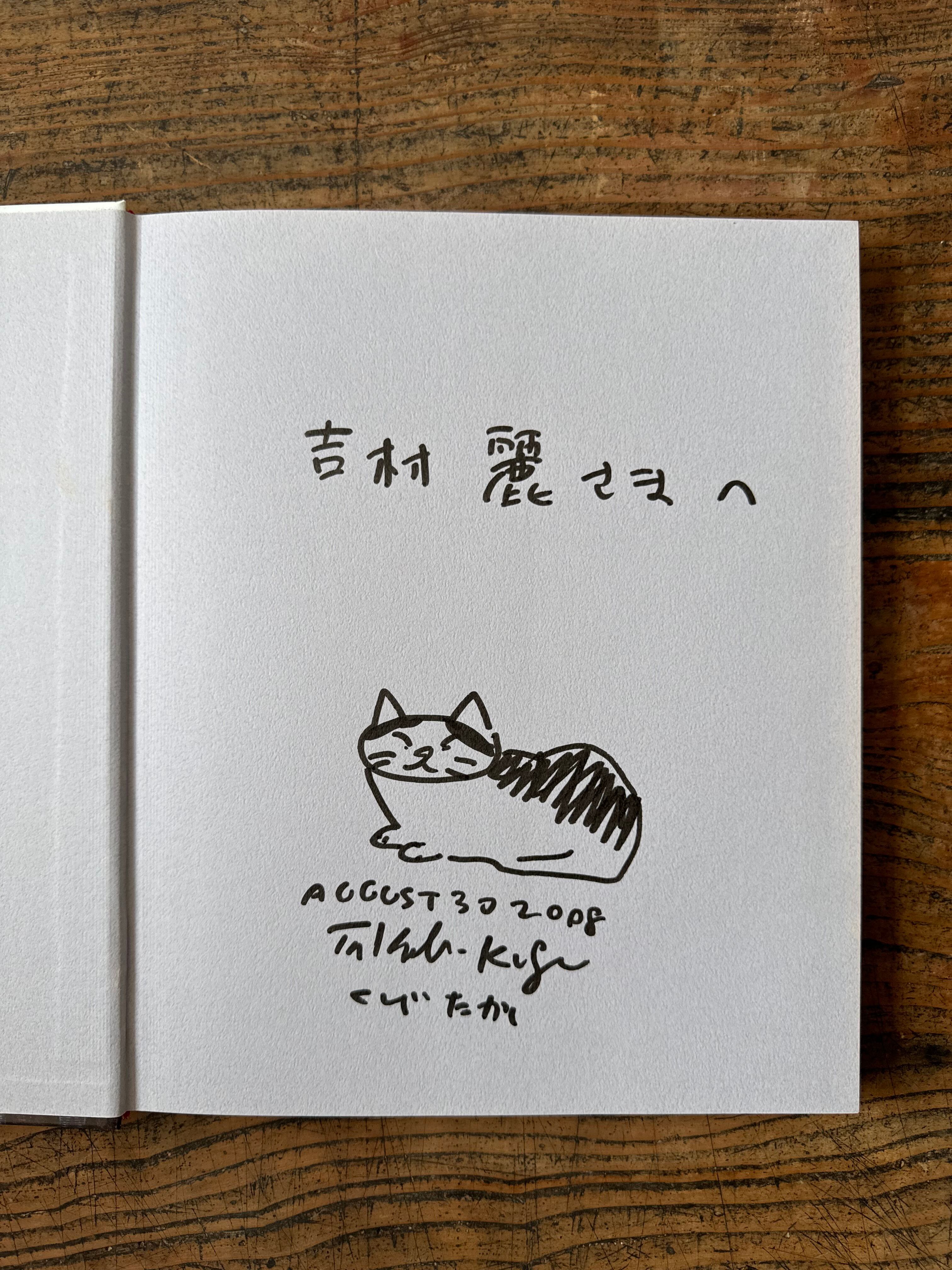 写真9枚目、前所有者にあてたと思われる直筆サインと直筆猫絵があります!