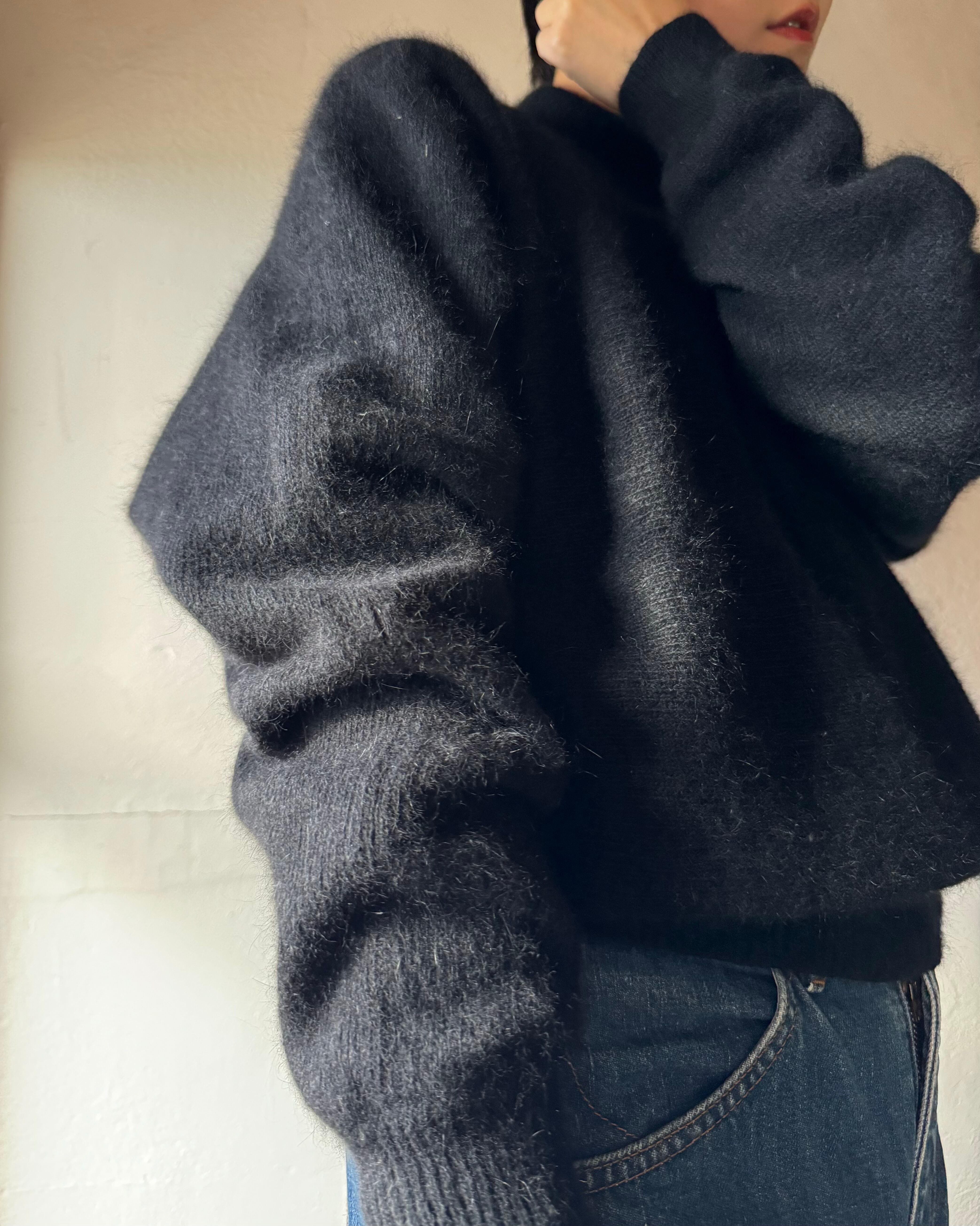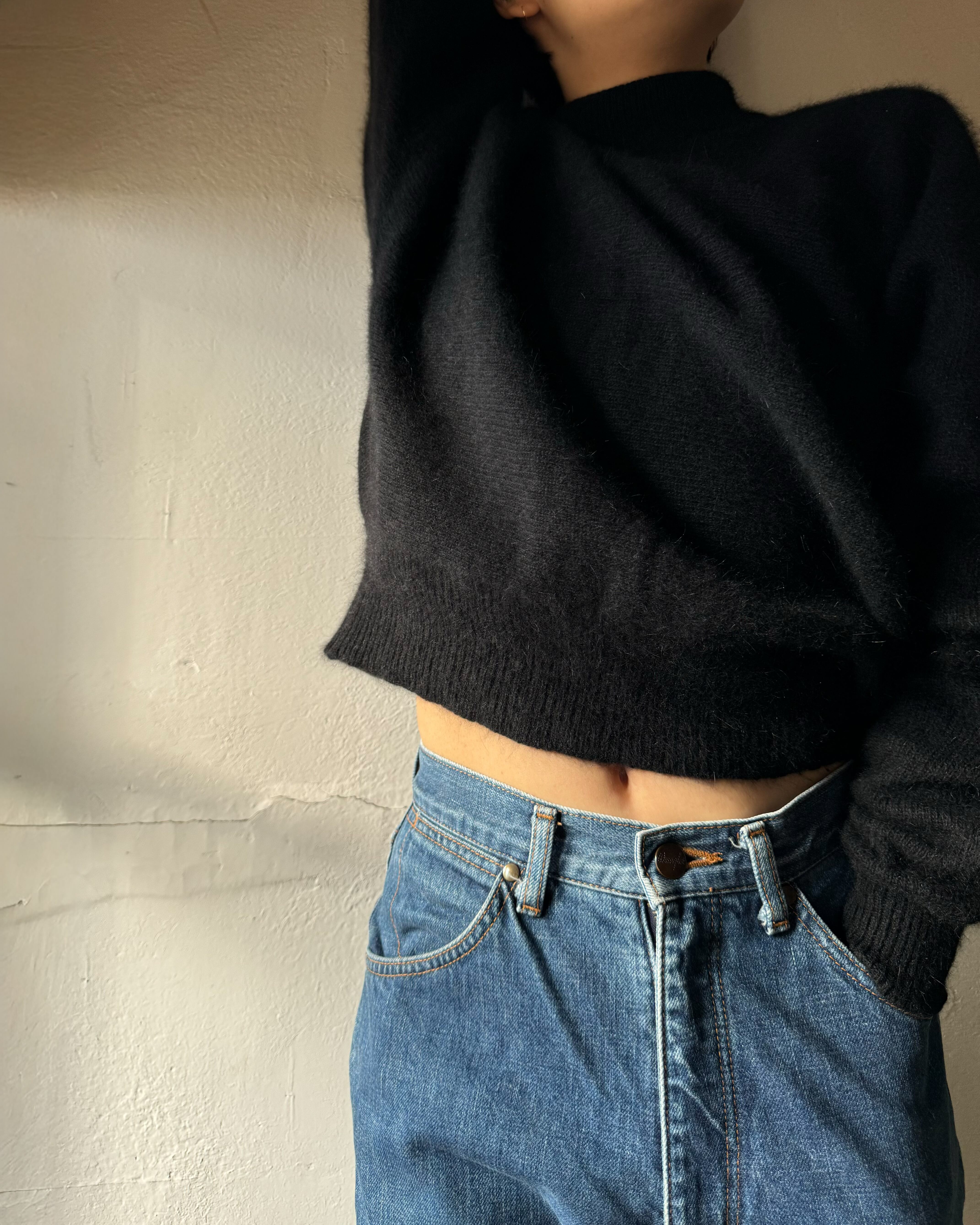 ちょこっと首のある丈短ニット(しかも素材のいい黒)は